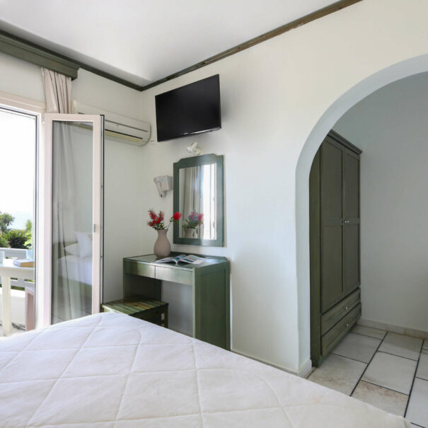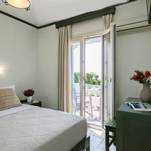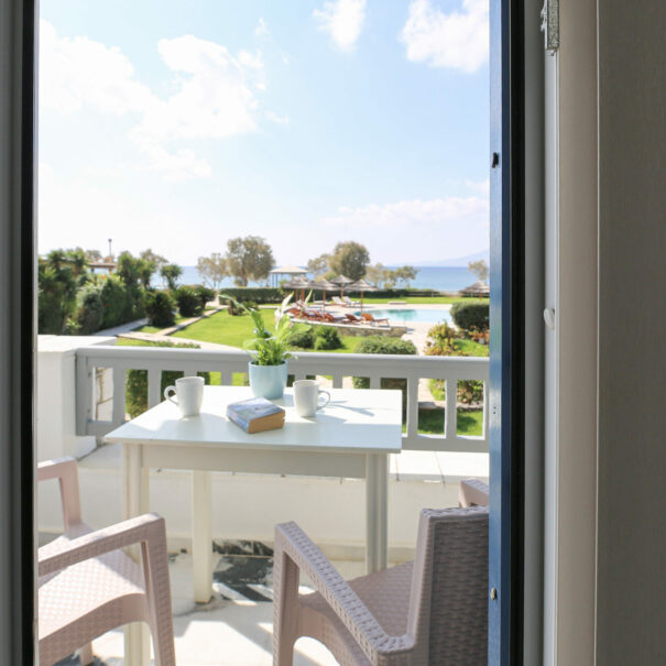 Απολαύστε τη θέα στο Αιγαίο πέλαγος από το τη βεράντα του δωματίου σας.
